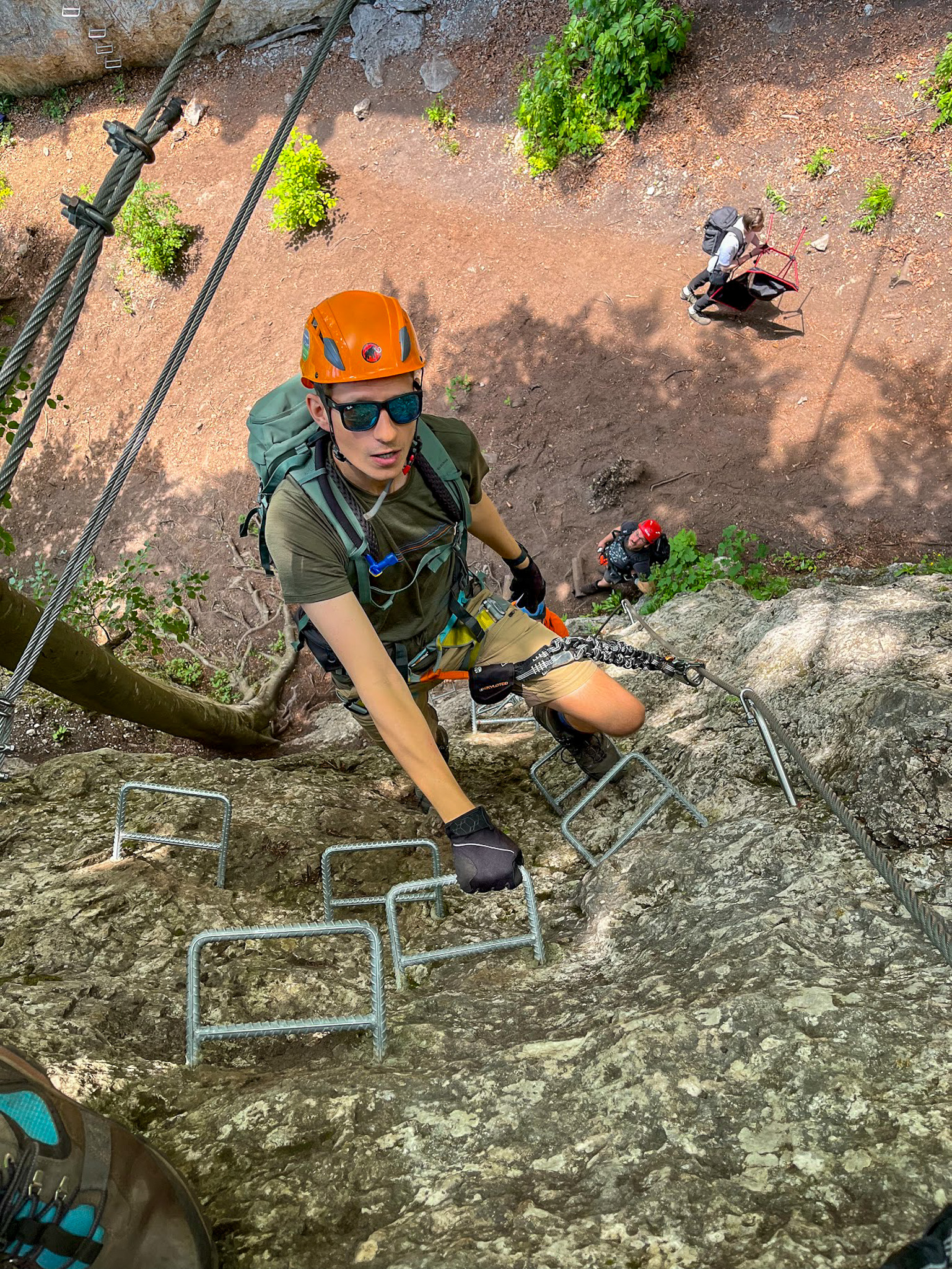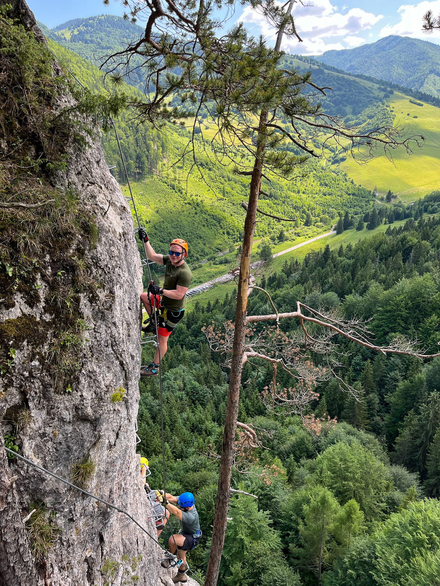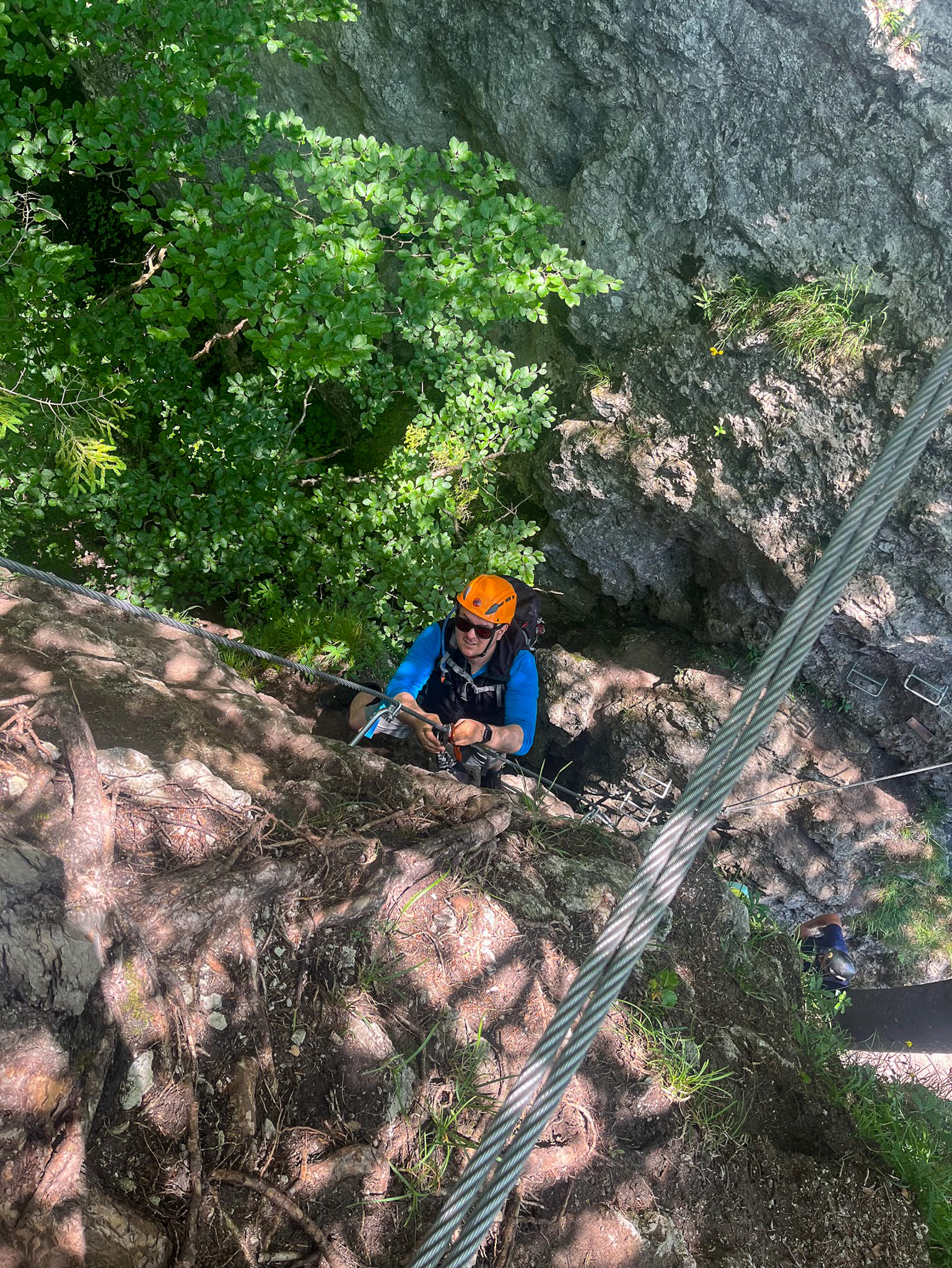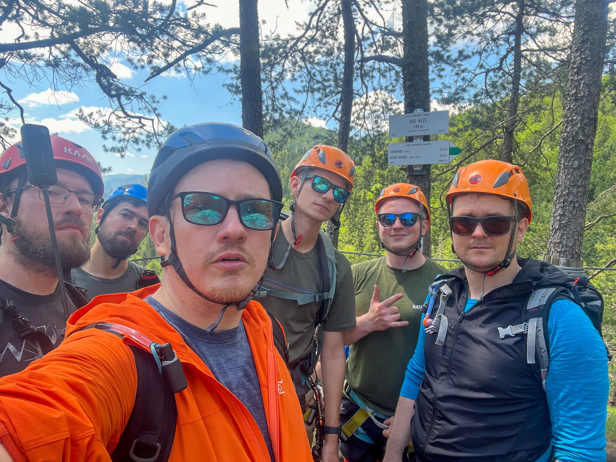 Dla większości z nas to pierwsze spokanie z ferratami, jest więc trochę emocji, ale raczej wszystko jest pod kontrolą. Kazda droga kończy się na szczycie jednej lub drugiej turni, skąd do podstawy schodzimy stormą ścięzką ubezpieczoną liną. Po trzech godzinach zabawy wracamy do auta.